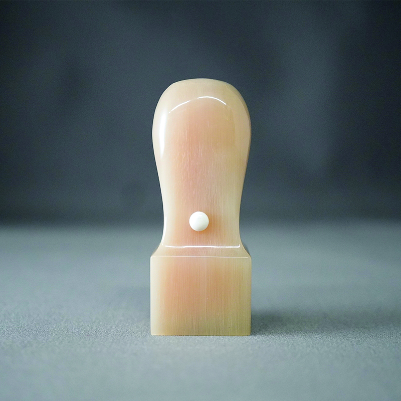 牛角は適度な弾力(粘り)を持っており、朱肉の馴染みが非常に良いのが特徴です。紙面を優しく、かつしっかりと捉えるため、鮮明で力強い印影を残すことができます。