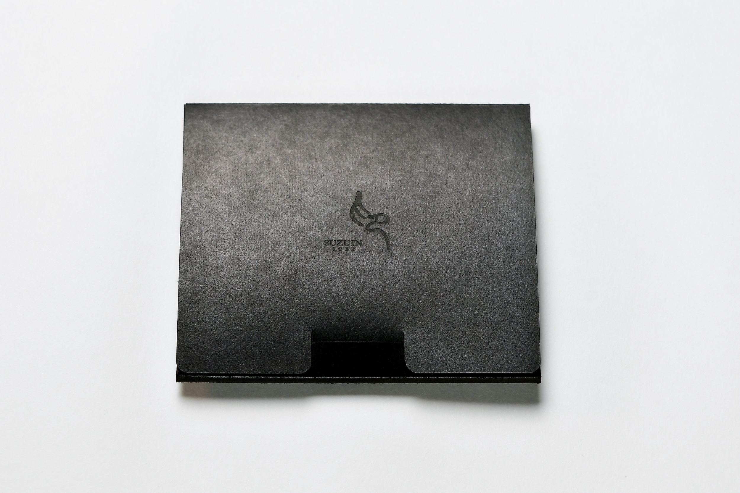そのため鈴印としてサイズは携帯用に特化し、パッケージはやや厚みのある艶消しの黒い紙を使用してたオリジナル製品を完成させました。
