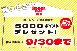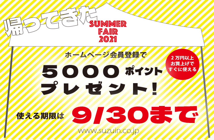 鈴印としては実に3年ぶりのサマーフェアを開催いたします。 きっかけは今夏の様々な制限で、各方面自粛疲れも出てきているように感じます。 私自身も子供たちにいつもと違う夏休みを過ごさざるを得ません。 なんとなく先行きが見通せ…