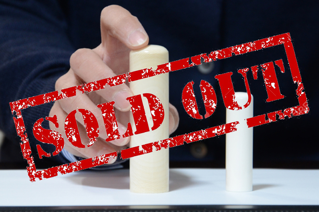 今回もソールドアウトのお知らせになります。 ソールドアウトになった商品は、牙継材です 毎回申し上げておりますが、牙継は非常に人気です。 理由は以下になるかと思われます。 印章の材料としての最高峰は今でも変わらず象牙ですが…